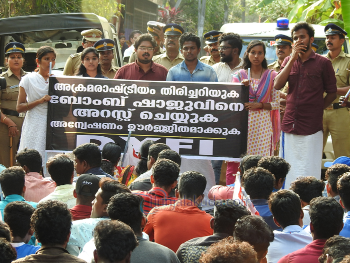മാപ്രാണം : കല്ലട വേലാഘോഷത്തിനിടെ നാടന്‍ ബോംബുമായി നാല് പേരെ പിടികൂടിയ സംഭവത്തില്‍ ഡി വൈ എഫ് ഐയുടെ നേതൃത്വത്തില്‍ ബിജെപി നേതാവ് ഷാജുവിന്റെ വീട്ടിലേയ്ക്ക് പ്രകടനം നടത്തി.പിടികൂടിയ നാല് പേരെയും വീട്ടില്‍ സംരക്ഷണം നല്‍കിയിരുന്നത് ഷാജുവായിരുന്നു എന്നരോപിച്ചാണ് പ്രതിഷേധപ്രകടനം നടത്തിയത്.പ്രകടനം ഷാജുവിന്റെ വീടിന് മുന്‍പായി എസ് എച്ച് ഓ സുരേഷിന്റെ നേതൃത്വത്തിലുള്ള സംഘം തടഞ്ഞതിനെ തുടര്‍ന്ന് പ്രവര്‍ത്തകര്‍ റോഡില്‍ കുത്തിയിരുന്ന് പ്രതിഷേധിച്ചു.തുടര്‍ന്ന് നടന്ന പ്രതിഷേധയോഗം ഡി വൈ എഫ് ഐ ബ്ലോക്ക് വൈസ് പ്രസിഡന്റ് ആര്‍ എല്‍ ജീവന്‍ലാല്‍ ഉദ്ഘാടനം ചെയ്തു.വിഷ്ണു പ്രഭാകരന്‍,മായമഹേഷ്,എ ഡി യദു,പി എസ് സജി തുടങ്ങിയവര്‍ പ്രസംഗിച്ചു.