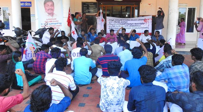 ഇരിങ്ങാലക്കുട-കാട്ടൂര്‍ ബൈപ്പാസിലെ അപകടപരമ്പയില്‍ പ്രതിഷേധിച്ച് ഡി .വൈ. എഫ് .ഐ നഗരസഭ ഉപരോധിച്ചു.കാട്ടൂര്‍ ബൈപ്പാസ് റോഡിലെ അപകട പരമ്പരക്ക് ഉടന്‍ പരിഹാരം കാണുക,ദിനം പ്രതി മരണക്കെണി ഒരുക്കുന്ന അശാസ്ത്രീയ ട്രാഫിക് സംവിധാനം ഉടന്‍ പരിഷ്‌ക്കരിക്കുക,ഇരിങ്ങാലക്കുടനഗരസഭയുടെ നോക്കുകുത്തി സ്വഭാവം അവസാനിപ്പിക്കുക എന്നീ ആവശ്യങ്ങളുന്നയിച്ചായിരുന്നു ഉപരോധം സംഘടിപ്പിച്ചത് .ഡി വൈ എഫ് ഐ സംസ്ഥാന കമ്മിറ്റിയംഗം ആര്‍ .എല്‍ ശ്രീലാല്‍ ഉദ്ഘാടനം ചെയ്തു.ബ്ലോക്ക് പ്രസിഡന്റ് വി എ അനീഷ് അധ്യക്ഷത വഹിച്ചു.ബ്ലോക്ക് എക്‌സിക്യൂട്ടീവ് വി എച്ച് വിജീഷ് ,ബ്ലോക്ക് കമ്മിറ്റിയംഗം ആതിര ഷാജന്‍ എന്നിവര്‍ അഭിവാന്ദ്യങ്ങളറിയിച്ചു .ബ്ലോക്ക് ജോയിന്റ് സെക്രട്ടറി മനു മോഹന്‍ സ്വാഗതവും ,.ബ്ലോക്ക് വൈസ് പ്രസിഡന്റ് സജിത്ത് ഐ വി നന്ദിയും പറഞ്ഞു