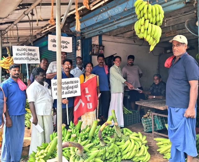 കേന്ദ്രസർക്കാരിൻ്റെ തൊഴിലാളി ദ്രോഹ നയങ്ങൾക്കെതിരെ സംയുക്ത ട്രേഡ് യൂണിയൻ നേതൃത്വത്തിൽ ജൂലായ് 9 ന് നടത്തുന്ന ദേശീയ പണിമുടക്കിൽ വ്യാപാരികളും തൊഴിലാളികളും പങ്കെടുക്കണമെന്നാവശ്യപ്പെട്ടു കൊണ്ട് ഇരിങ്ങാലക്കുട മാർക്കറ്റിൽ സ്ക്വാഡ് പ്രവർത്തനം സംഘടിപ്പിച്ചു. സംസ്ഥാന കമ്മിറ്റി അംഗം ഉല്ലാസ് കളക്കാട്ട്, ഏരിയ സെക്രട്ടറി കെ എ ഗോപി, ഏരിയ പ്രസിഡണ്ട് സി ഡി സിജിത്ത്, ഡോ. കെ പി ജോർജ്ജ്,അജിത രാജൻ, സി വൈ ബെന്നി, വി എ അനീഷ് , അഭിലാഷ് എന്നിവർ നേതൃത്വം നൽകി.