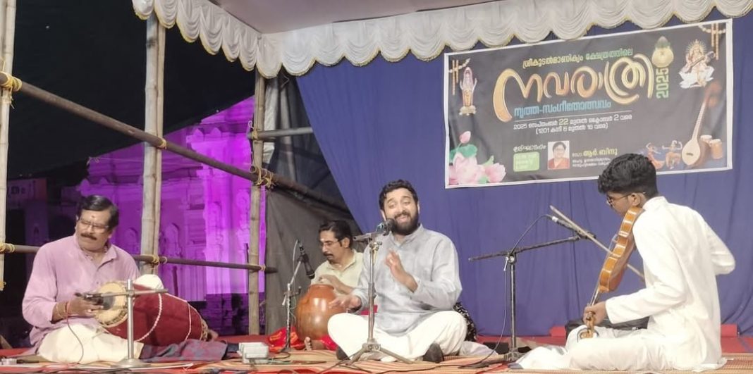Festivals Less than 1 min.Read നവരാത്രി നൃത്ത സംഗീതോത്സവം By Binh J Thottan September 24, 2025 FacebookTwitterPinterestWhatsApp ശ്രീ കൂടൽമാണിക്യ ക്ഷേത്രത്തിലെ നവരാത്രി നൃത്ത സംഗീതോത്സവം രണ്ടാം ദിവസം പ്രശസ്ത സംഗീതജ്ഞൻ ശ്രീ വിവേക് മൂഴിക്കുളം അവതരിപ്പിച്ച സംഗീതക്കച്ചരി. വയലിൻ: ശ്രീ.ആദിത്യ അനിൽ മൃദംഗം: ഡോ. പാലക്കാട് കെ ജയകൃഷ്ണൻ ഘടം: ശ്രീ ഹരിപ്പാട് എസ്. ആർ ശേഖർ Hot this week Obituaries നിര്യാതനായി September 29, 2025 0 എടതിരിഞ്ഞി: അടിപറമ്പിൽ പരേതനായ കുമാരൻ മകൻ വിജയൻ 78അന്തരിച്ചു സംസ്കാരം തിങ്കളാഴ്ച... Events ബാലാമണി അമ്മ മലയാളത്തിന്റെ മാതൃഭാവം September 29, 2025 0 (ബാലാമണിയമ്മയുടെ ഇരുപത്തിയൊന്നാം ചരമവാർഷികം) ഉണ്ണികൃഷ്ണൻ കിഴുത്താണി "ഓമനേ നിന്നിലെ പൂർണ്ണത ചേർത്തിടാ- സ്ത്രീ മുലപ്പാലിലെ ദൗർബ്ബല്യങ്ങൾ" എന്നെഴുതിയ... Local News ഇന്ന് ഹൃദയദിനം September 29, 2025 0 School & College എൽ.ബി. എസ്. എം. സ്കൂളിൽ എൻ.എസ്. എസ്. ദിനാചരണം നടത്തി September 25, 2025 0 അവിട്ടത്തൂർ : ലാൽ ബഹാദൂർ ശാസ്ത്രി മെമ്മോറിയൽ ഹയർ സെക്കണ്ടറി സ്കൂളിൽ... School & College അംഗനവാടി കെട്ടിടം ഉന്നതവിദ്യാഭ്യാസ സാമൂഹ്യനീതി വകുപ്പ് മന്ത്രി Dr.R ബിന്ദു നാടിനു സമർപ്പിച്ചു September 25, 2025 0 കാട്ടൂർ :ഉന്നതവിദ്യാഭ്യാസ സാമൂഹ്യനീതി വകുപ്പ് മന്ത്രി Dr.R ബിന്ദുവിൻ്റെ ആസ്തിവികസന ഫണ്ടിൽ... Topics Obituaries നിര്യാതനായി 0 എടതിരിഞ്ഞി: അടിപറമ്പിൽ പരേതനായ കുമാരൻ മകൻ വിജയൻ 78അന്തരിച്ചു സംസ്കാരം തിങ്കളാഴ്ച... Events ബാലാമണി അമ്മ മലയാളത്തിന്റെ മാതൃഭാവം 0 (ബാലാമണിയമ്മയുടെ ഇരുപത്തിയൊന്നാം ചരമവാർഷികം) ഉണ്ണികൃഷ്ണൻ കിഴുത്താണി "ഓമനേ നിന്നിലെ പൂർണ്ണത ചേർത്തിടാ- സ്ത്രീ മുലപ്പാലിലെ ദൗർബ്ബല്യങ്ങൾ" എന്നെഴുതിയ... Local News ഇന്ന് ഹൃദയദിനം 0 School & College എൽ.ബി. എസ്. എം. സ്കൂളിൽ എൻ.എസ്. എസ്. ദിനാചരണം നടത്തി 0 അവിട്ടത്തൂർ : ലാൽ ബഹാദൂർ ശാസ്ത്രി മെമ്മോറിയൽ ഹയർ സെക്കണ്ടറി സ്കൂളിൽ... School & College അംഗനവാടി കെട്ടിടം ഉന്നതവിദ്യാഭ്യാസ സാമൂഹ്യനീതി വകുപ്പ് മന്ത്രി Dr.R ബിന്ദു നാടിനു സമർപ്പിച്ചു 0 കാട്ടൂർ :ഉന്നതവിദ്യാഭ്യാസ സാമൂഹ്യനീതി വകുപ്പ് മന്ത്രി Dr.R ബിന്ദുവിൻ്റെ ആസ്തിവികസന ഫണ്ടിൽ... School & College ദേശീയ എൻ.എസ്.എസ് ദിനാചരണത്തിന്റെ ഭാഗമായി “പക്ഷിവനം പദ്ധതി”യ്ക്ക് തുടക്കം കുറിച്ചു 0 പിന്നാക്ക വിഭാഗങ്ങളുടെ ശാക്തീകരണത്തിന് ഈ വർഷം എൻ.എസ്.എസ് "മാനസഗ്രാമം" പദ്ധതി നടപ്പിലാക്കും... Obituaries വീടിനുള്ളിൽ തൂങ്ങിമരിച്ച നിലയിൽ കാണപ്പെട്ടു 0 ഇരിങ്ങാലക്കുട: മുരിയാട് ഗ്രാമപഞ്ചായത്ത് പതിനാറാം വാർഡ് മുരിയാട് മൂലക്കാട്ടിൽ പരേതനായ വിശ്വംഭരൻ... Obituaries നിര്യാതനായി 0 ഇരിങ്ങാലക്കുട : മുരിയാട് ഗ്രാമപഞ്ചായത്ത് പതിനേഴാം വാർഡ് ആനന്ദപുരം എടയാട്ടുമുറി ഞാറ്റുവെട്ടി... Related Articles വെള്ളാങ്കല്ലൂർ വടക്കുംകര മഹല്ല് ജമാഅത്തിൽ അന്ത്യപ്രവചകൻ മുഹമ്മദ് നബി (സ) യുടെ 1500ാം ജന്മദിനം സമുചിതമായി ആഘോഷിച്ചു. Festivals September 8, 2025 ആദ്യ കുർബാന ശുശ്രൂഷ സംഘടിപ്പിച്ചു Festivals May 20, 2025 Popular Categories Local 